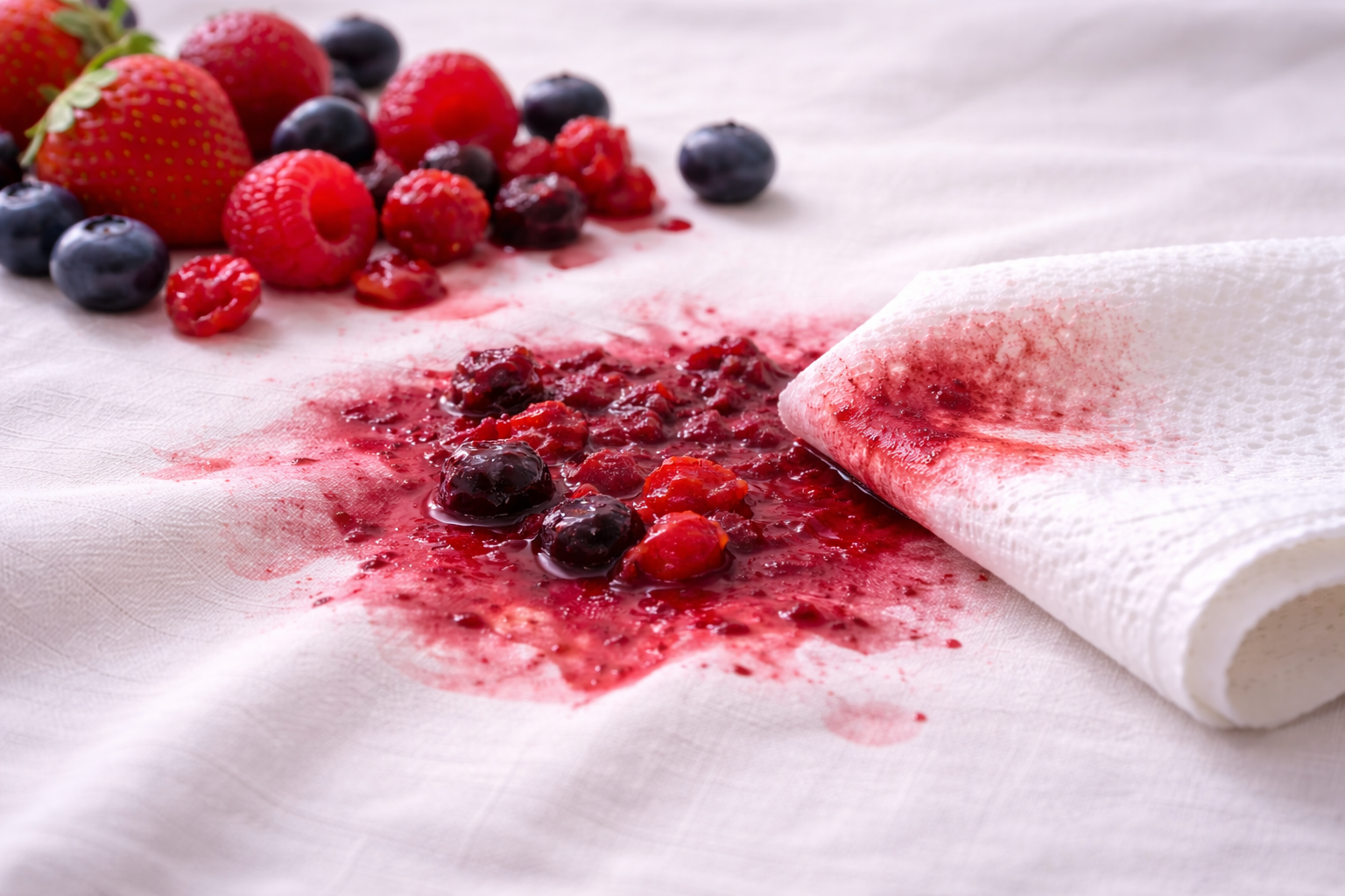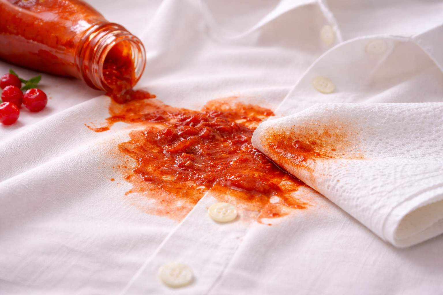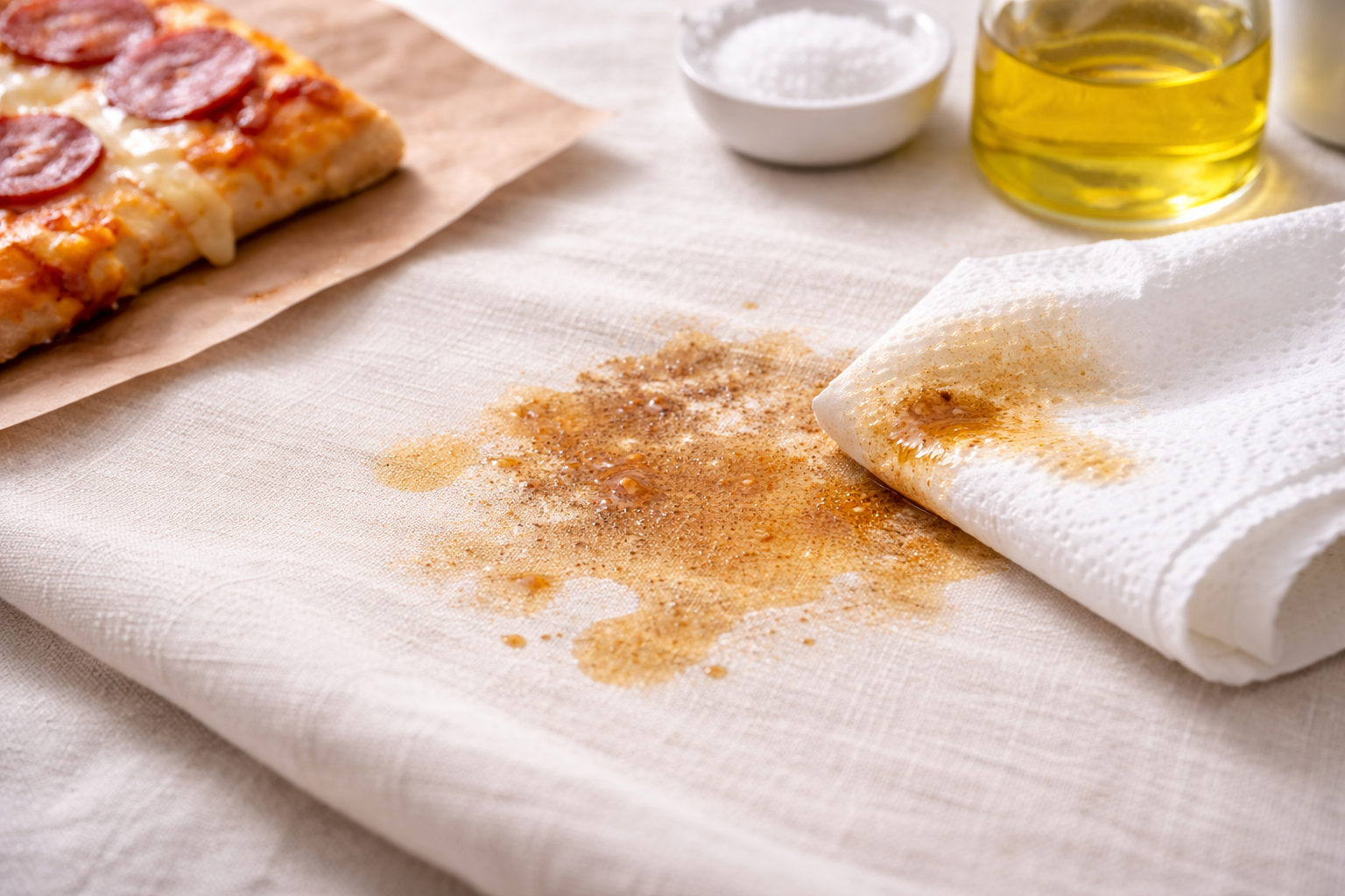Commencez par retirer délicatement l’excédent de matière à l’aide d’un chiffon propre ou d’un papier absorbant, sans étaler la tache.